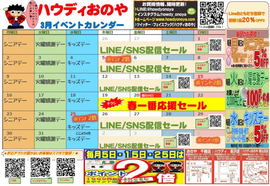 【売出し開催】春一番応援セール★3月19日(木)~22日(日)