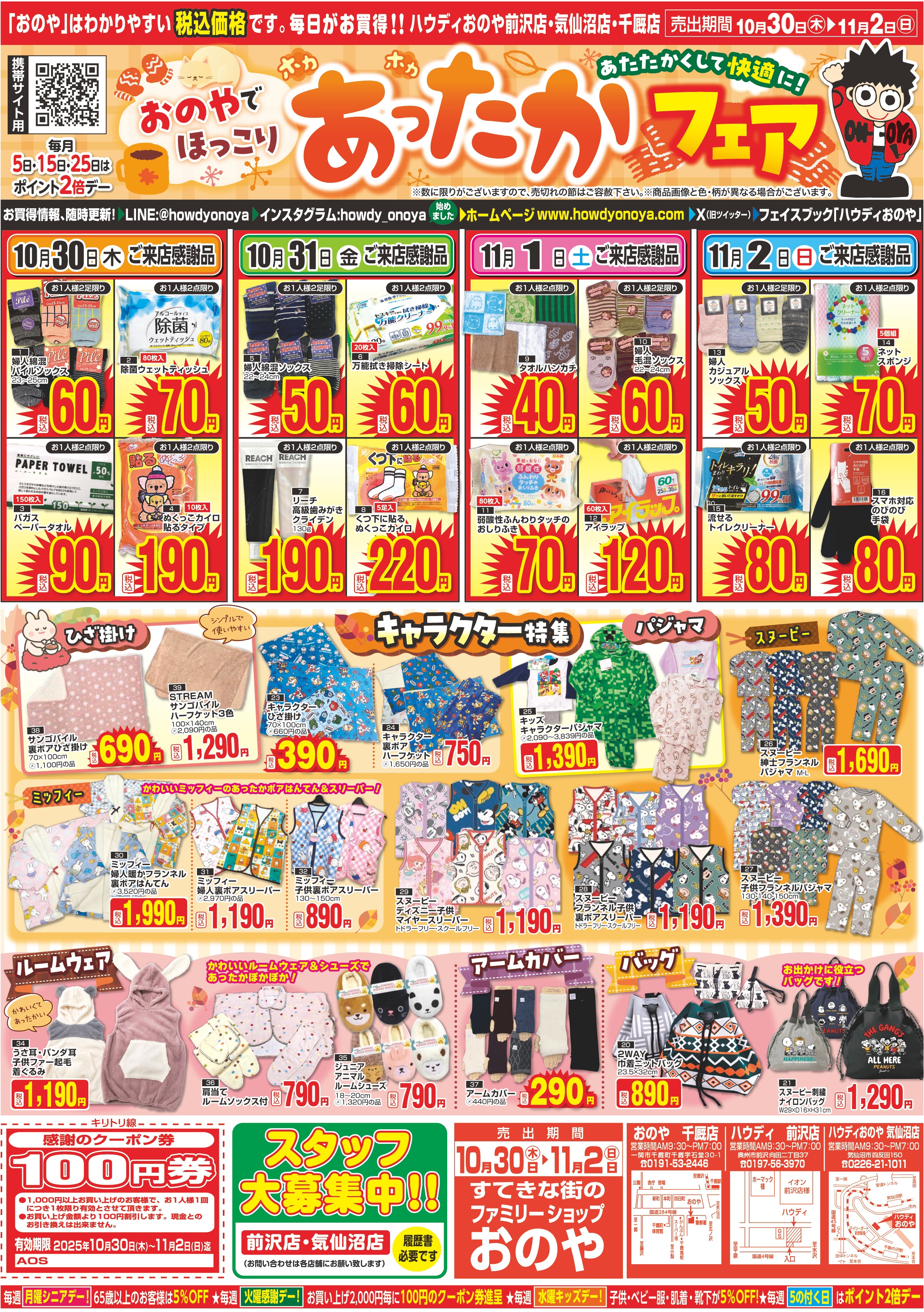 毎日がお買い得!!千厩・前沢・気仙沼の衣料品ファッションならおのや