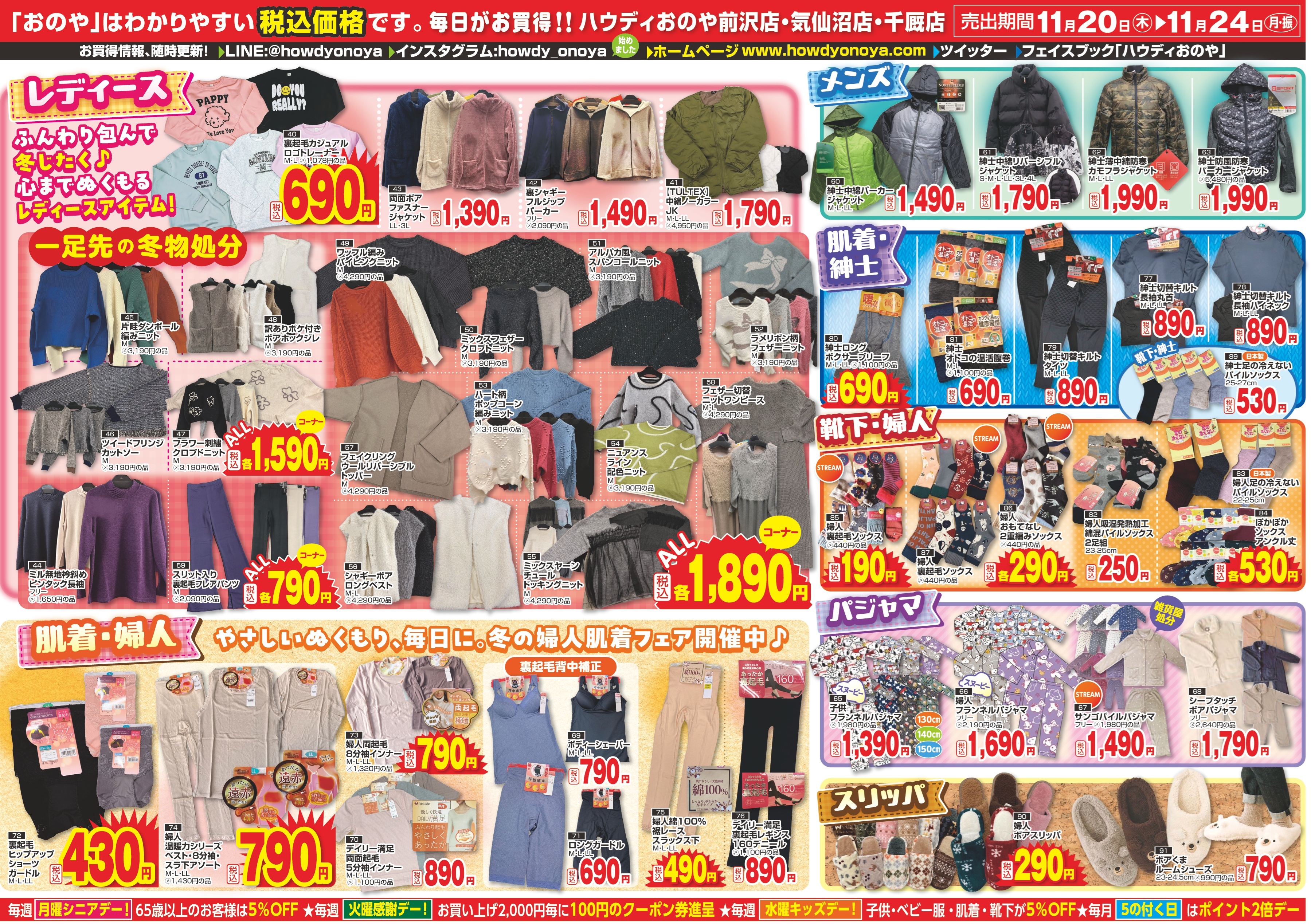 毎日がお買い得!!千厩・前沢・気仙沼の衣料品ファッションならおのや