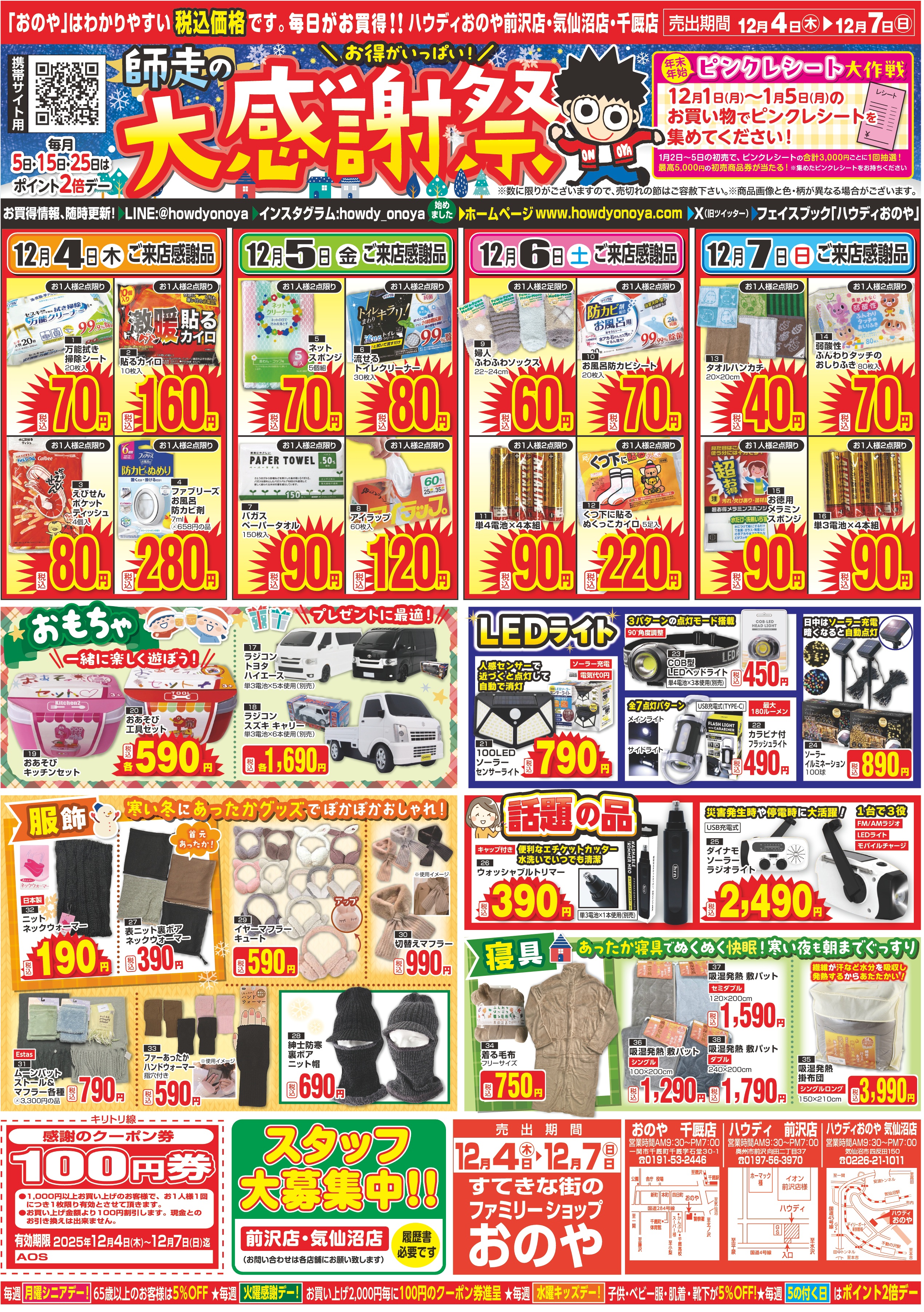 毎日がお買い得!!千厩・前沢・気仙沼の衣料品ファッションならおのや