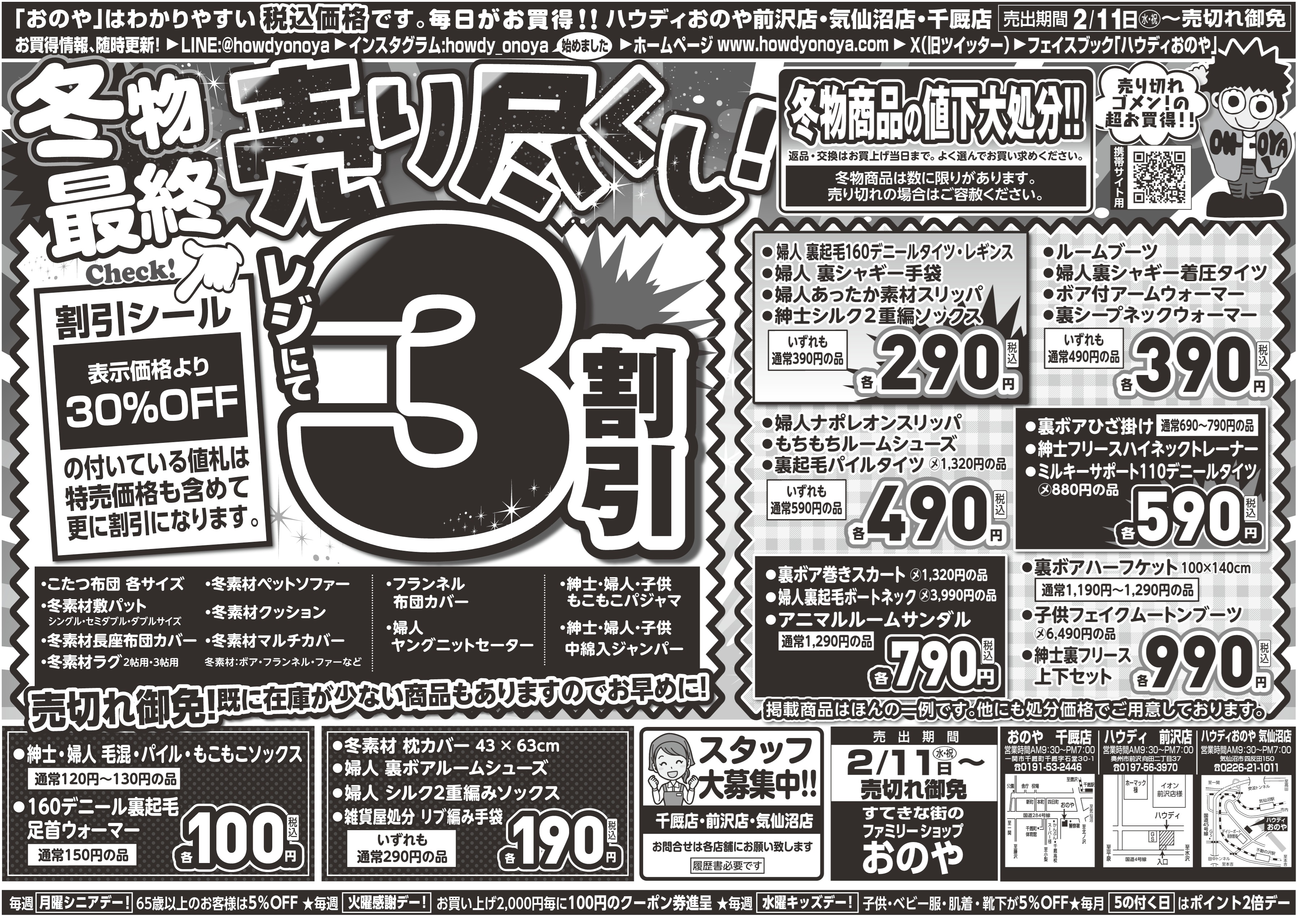 毎日がお買い得!!千厩・前沢・気仙沼の衣料品ファッションならおのや