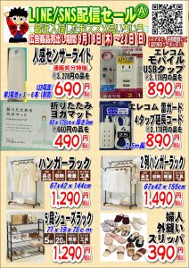 ★LINE/SNS配信セール★9月18日(木)~21日(日)
