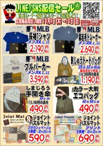 ★LINE/SNS配信セール★10月9日(木)~13日(祝・月)