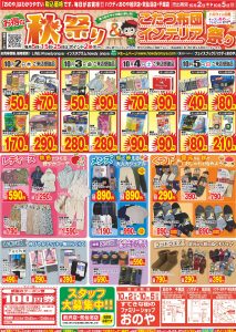 【売出し開催】お得な秋祭り&こたつ布団・インテリア祭り★10月2日(木)~5日(日)